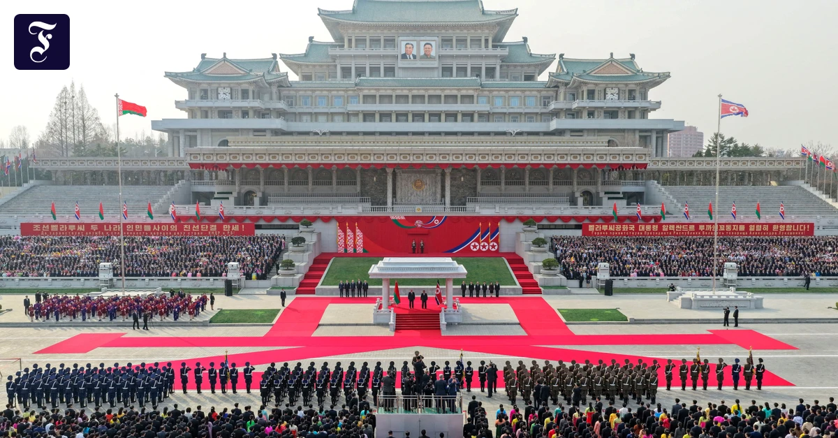 Für den ersten Besuch des belarussischen Machthabers in Pjöngjang ließ Kim Jong-un Tausende Nordkoreaner auf dem Kim-Il-sung-Platz jubeln. Einundzwanzig Schuss Salut ließ das Regime für Alexandr Lukaschenko abfeuern, als die Diktatoren eine Ehrenformation abschritten.