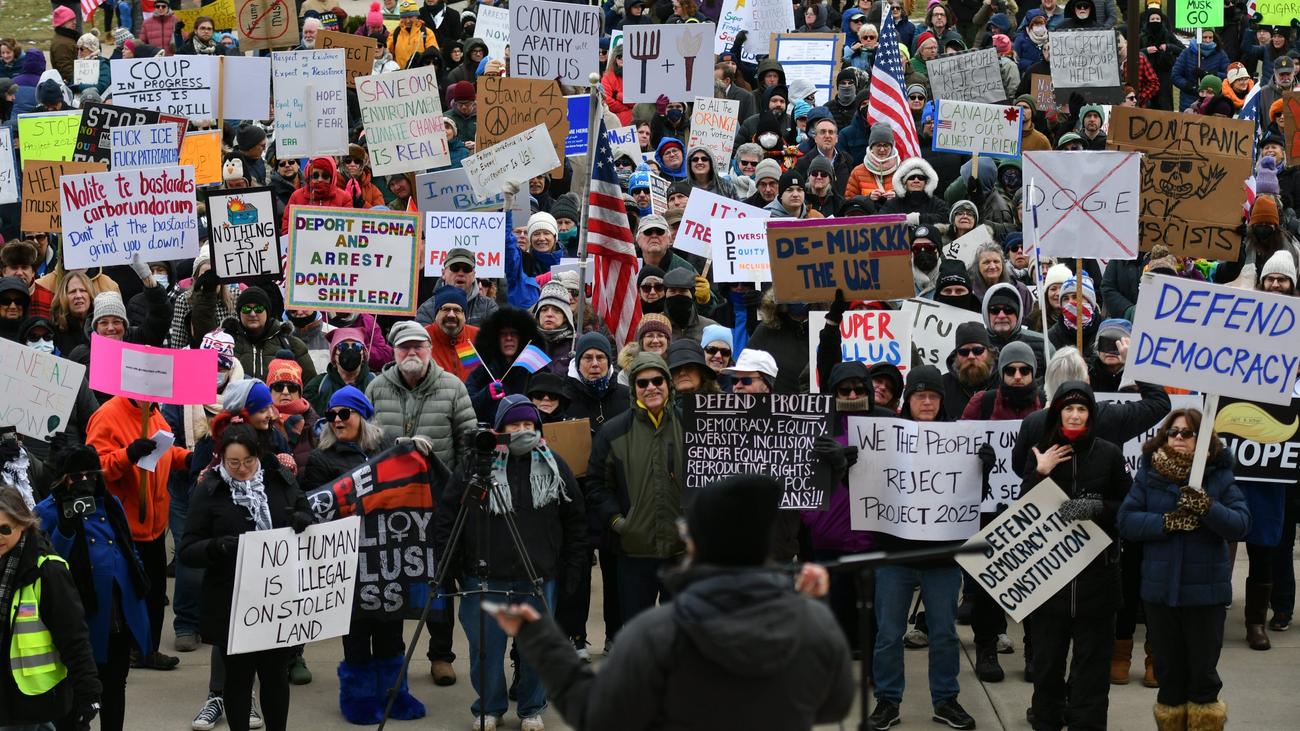 Vor dem Kapitol des US-Bundesstaates Minnesota in St. Paul trotzten mehr als 2.000 Demonstranten den ebenfalls eisigen Temperaturen von minus 15 Grad. Hunderte versammelten sich auch im kalifornischen Sacramento und in der Stadt Boise im US-Staat Idaho. In Columbus, der Hauptstadt von Ohio, wurde ebenfalls vor dem Staatskapitol demonstriert. „Wach‘ auf USA! Stoppt den Putsch, der im Gange ist“, skandierten Teilnehmer. Hunderte von Demonstranten versammelten sich vor dem Staatskapitol in Phoenix im US-Staat Arizona. Sie skandierten: „Kein Hass, keine Angst, Einwanderer sind hier willkommen!“ oder „Deportiert Elon!“.