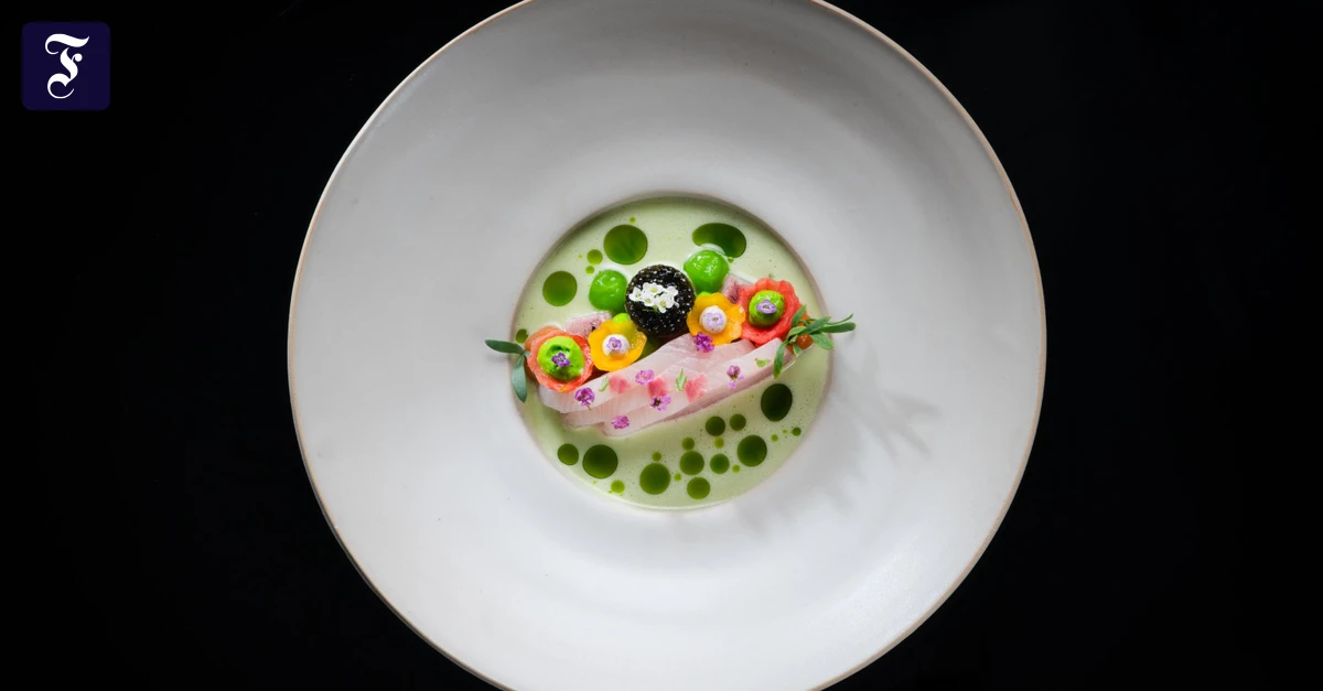 Für die Gelbschwanzmakrele 120 g vom Bauch in kleine Würfel schneiden, mit der Vinaigrette vermischen und als Tatar anrichten. Je nach Bedarf kann es mit 20 g Kaviar und frischem Wasabi verfeinert werden. 350 g Filet von der Gelbschwanzmakrele in Sashimi-Stücke (4 cm lang, 0,5 cm dünn) schneiden.