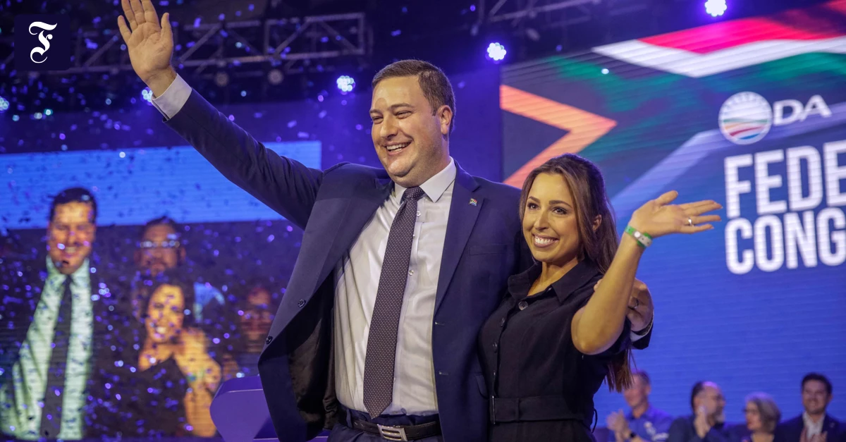 Der Kapstädter Bürgermeister blickte schon vor der Abstimmung siegessicher in die Kameras. Auf dem Parteitag der Democratic Alliance (DA), der zweitgrößten Partei in Südafrikas Koalitionsregierung, ist Geordin Hill-Lewis am Sonntag wie erwartet zum neuen Parteichef gewählt worden. Es war der erste Parteitag und der erste Führungswechsel in der DA, seit der Afrikanische Nationalkongress (ANC) 2024, erstmals seit dem Ende der Apartheid, die absolute Mehrheit verloren hatte. Mit der DA und etlichen kleineren Parteien bildete die einstige Partei Nelson Mandelas daraufhin eine „Regierung der nationalen Einheit“.