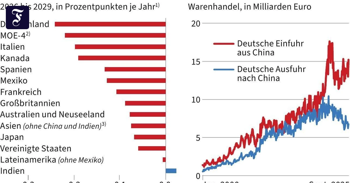 Gemäß der Studie von Goldman Sachs drückt der erwartete chinesische Exportschub das Wachstum in Deutschland in den Jahren von 2026 bis 2029 um durchschnittlich etwa 0,25 Prozentpunkte im Jahr. Das könnte reichen, um Deutschland in der Stagnation zu halten.